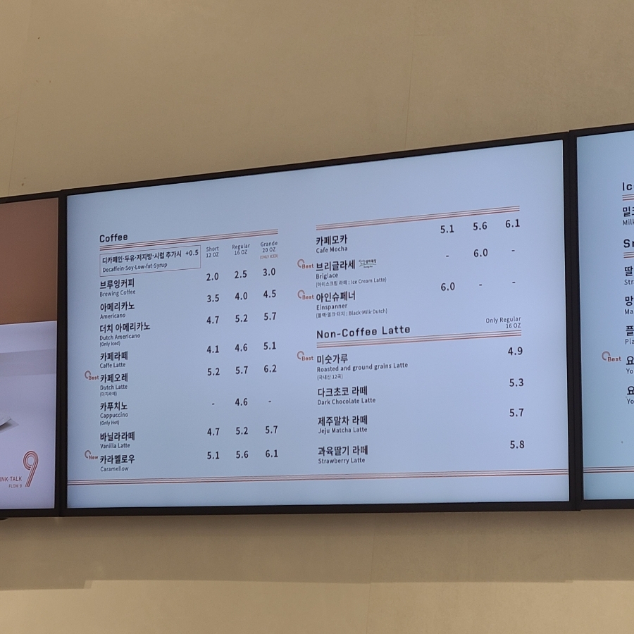 주문한 "브리글라세" 아이스크림 라떼를 기다리면서