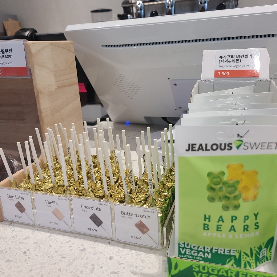 바로 앞에는 카운터가 아닌 굿즈가 진열되어있더라구요 :)