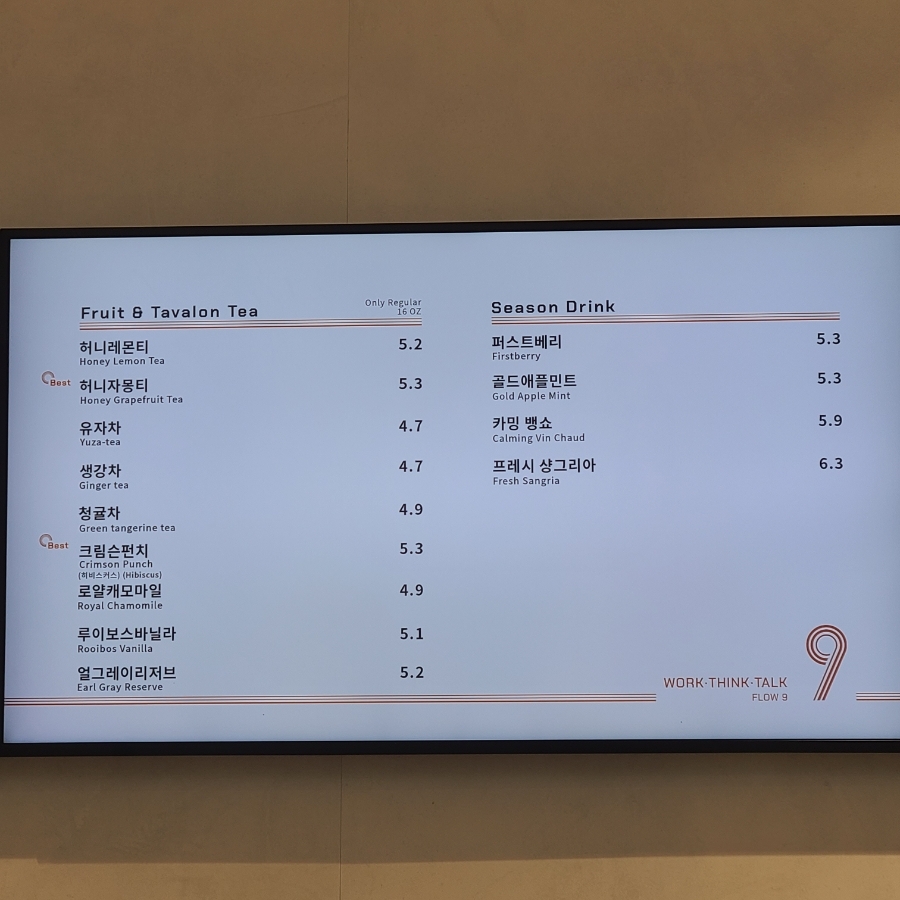 "플로우나인" 카페에서는 이렇게 대표적으로 밀고 있는