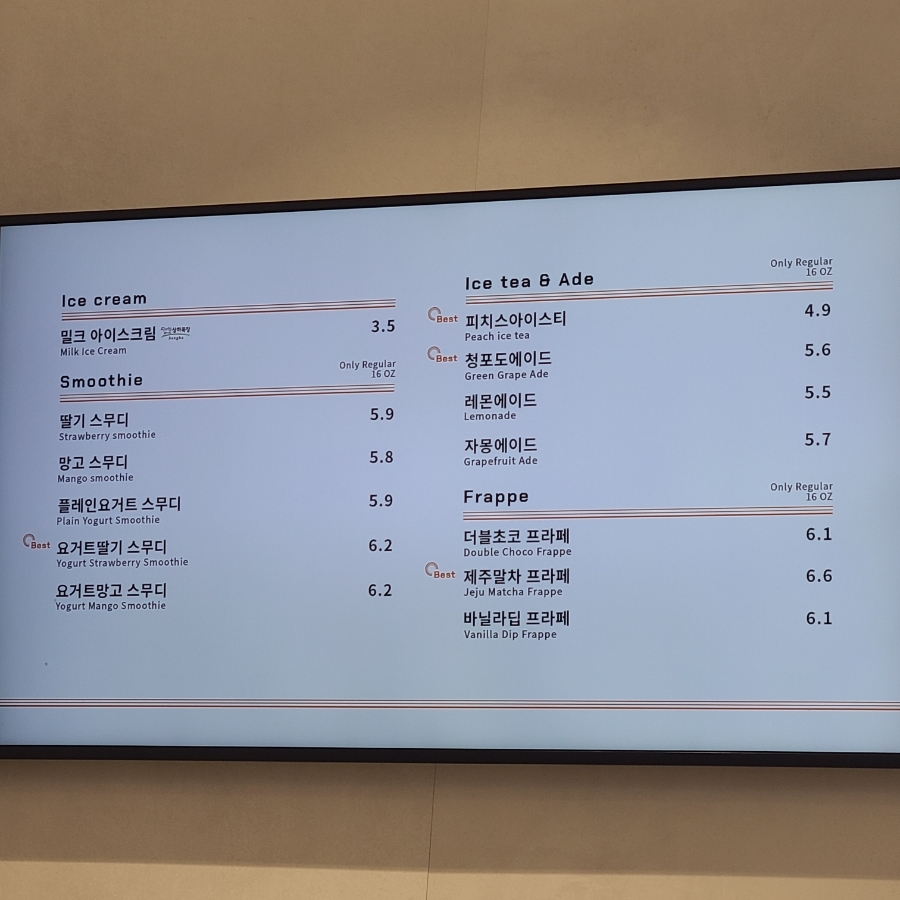 "브리글라세" 일명 아이스크림 라떼를 주문했습니다!