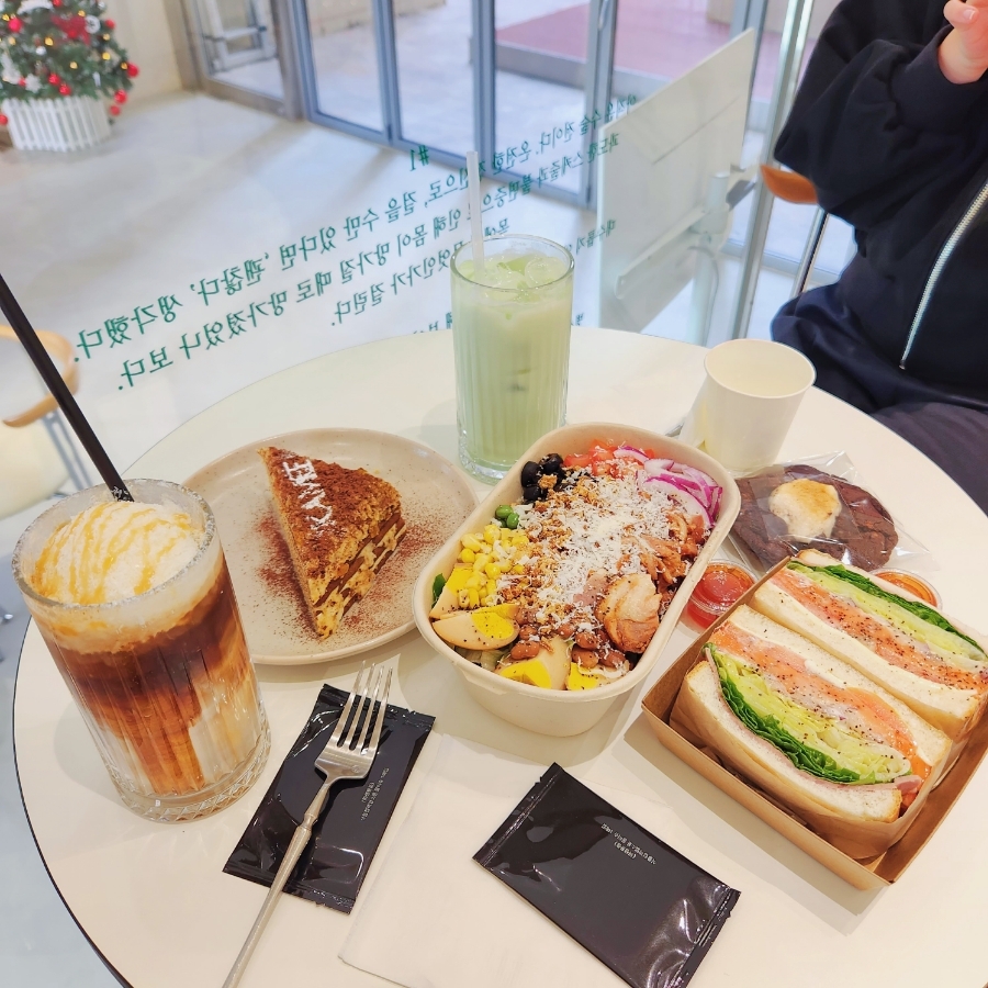 피스타치오 라떼, 훈제 연어 샌드위치,