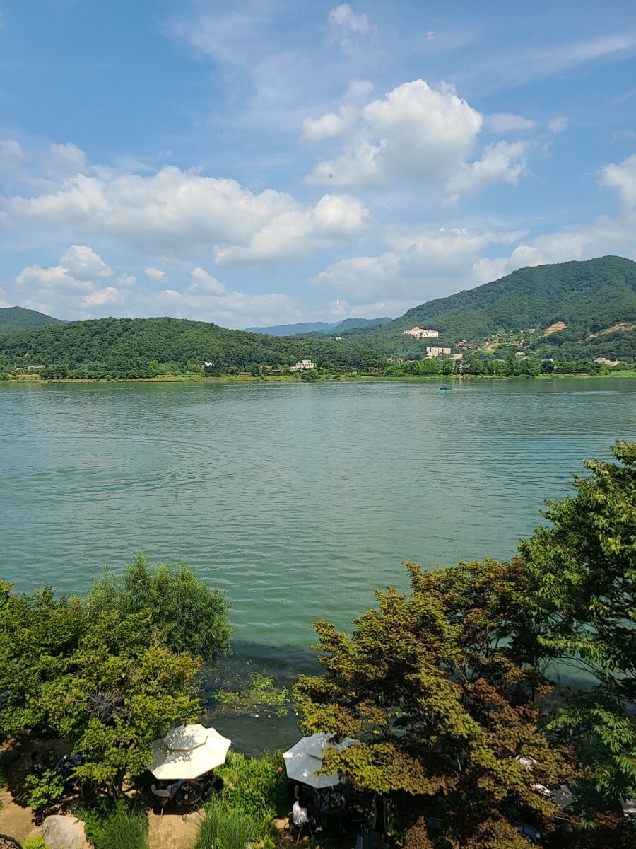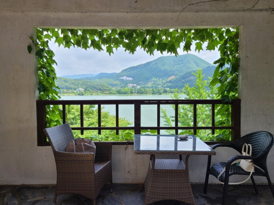 날씨만 선선하면 북한강이 바로 눈 앞에 있는 야외 테라스 자리에 앉아도 좋을 것 같아요.