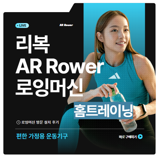 이제는 나가지 않아도 방문설치 가능한 리복 AR Rower 로잉머신으로 집에서도 완벽한 운동이 가능합니다.