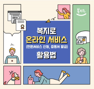 복지로에서 복지서비스 신청 외에도 온라인으로 이용할 수 있는 서비스에 대해 알려드립니다. 민원서비스 신청의 경우 복지급여 계좌변경, 가족정보 제공 동의, 증명서 발급 및 진위 여부 확인 등 민원서비스를 복지로 온라인 서비스에서 이용해 보세요.
