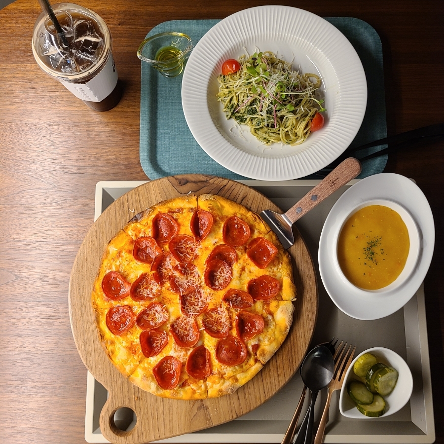 "러빙데이"는 페페로니 피자랑 바질페스토,