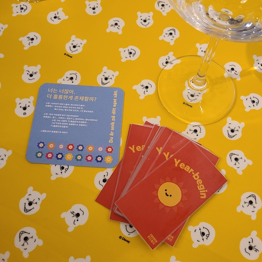 이어가게끔 도와주는 소통카드가 5~6가지 정도 있는데 마음에 드는거로 골라서 사용하고 자리에 갔다두면 되요 !