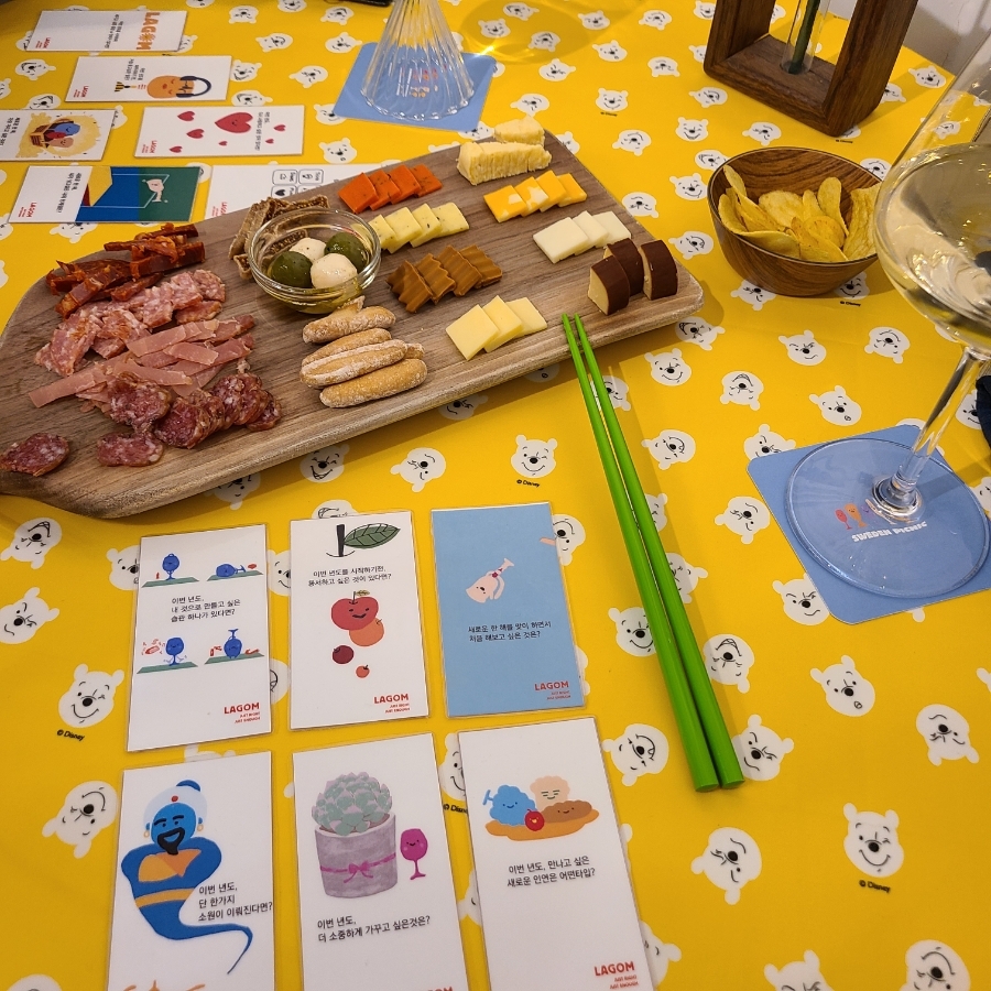 이렇게 대화카드를 꺼내서 주제에 맞는 대답을하고 와인 한잔 마시고 하다보니 시간이 빨리 지나가더라구요~~
