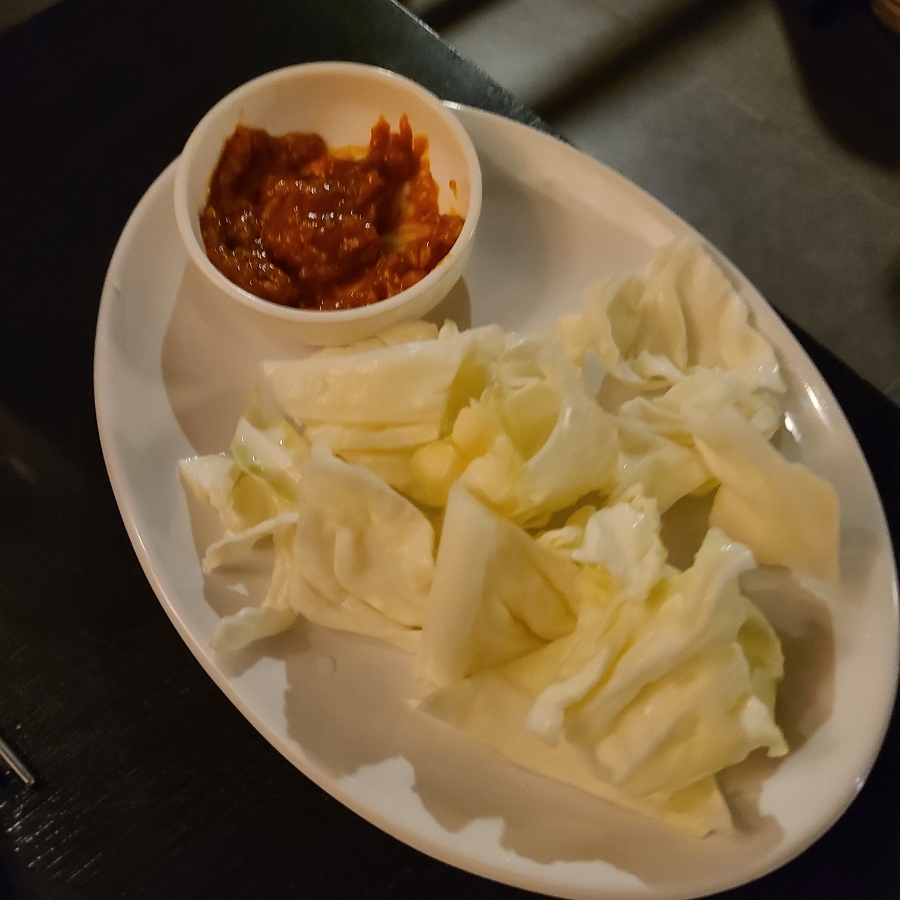 안주의정석 기본안주로 배추랑 쌈장이 나오는데