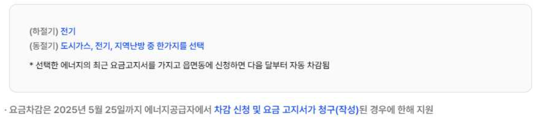 - 필요 서류: 주민등록증, 세대주 확인 서류, 에너지 사용량 확인 서류 등
