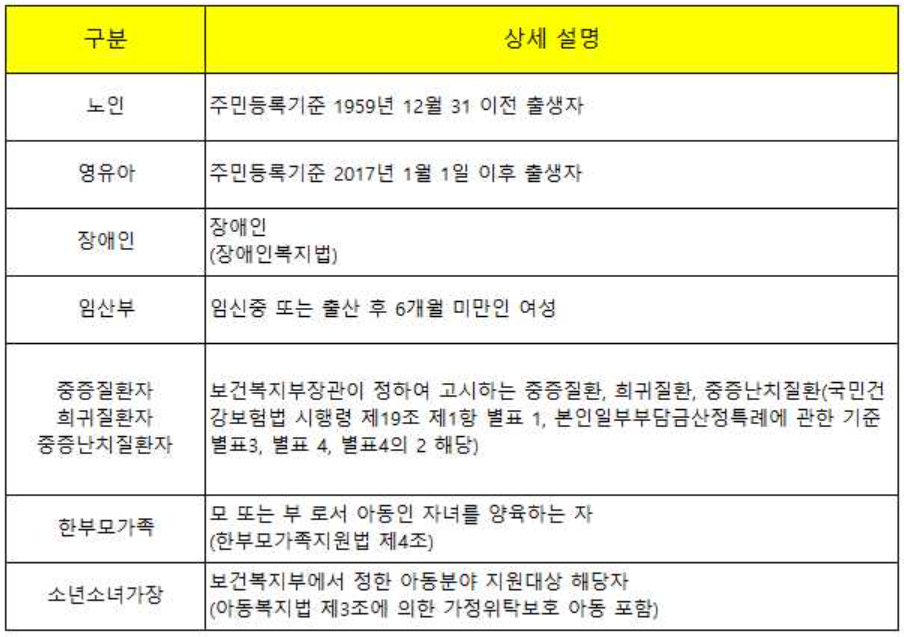 - 세대원 특성: 65세 이상 노인, 만성질환자, 다둥이 가구, 저출산 가구 등 특정 조건을 충족하는 세대