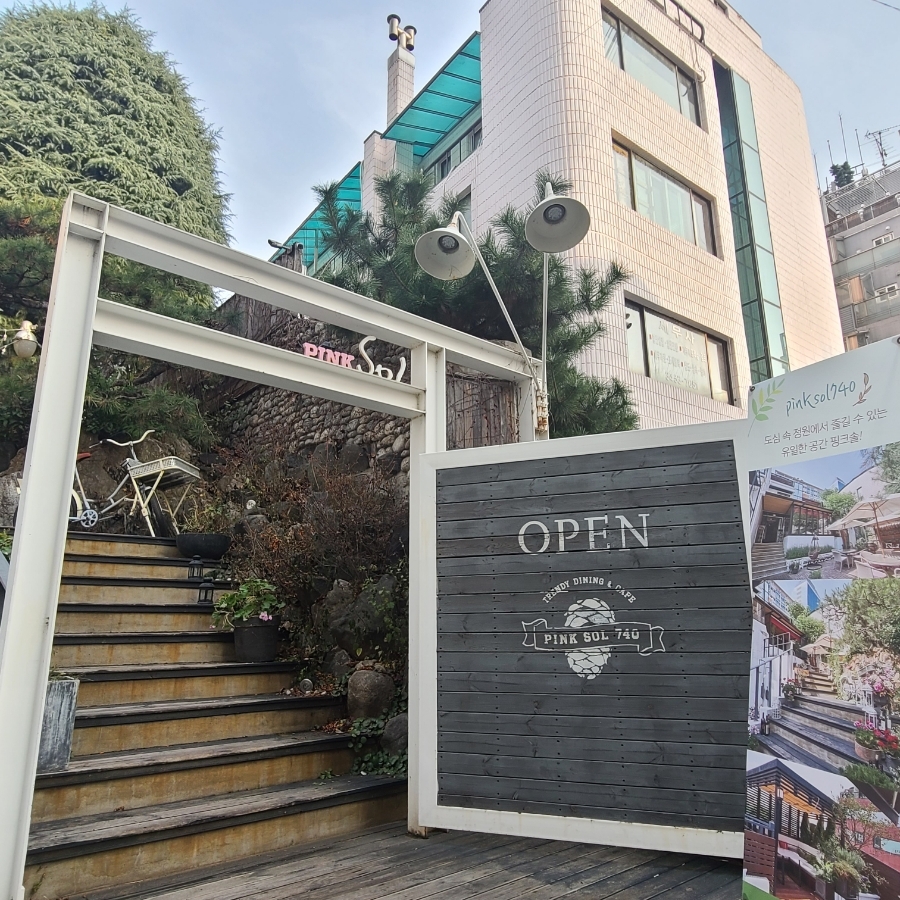 강남 역삼동 핑크솔740 입구 앞에는 비오는 날