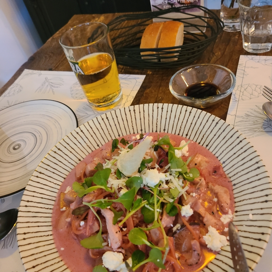 빵 한조각 먹을 때쯤 나온 핑크 크림 파스타