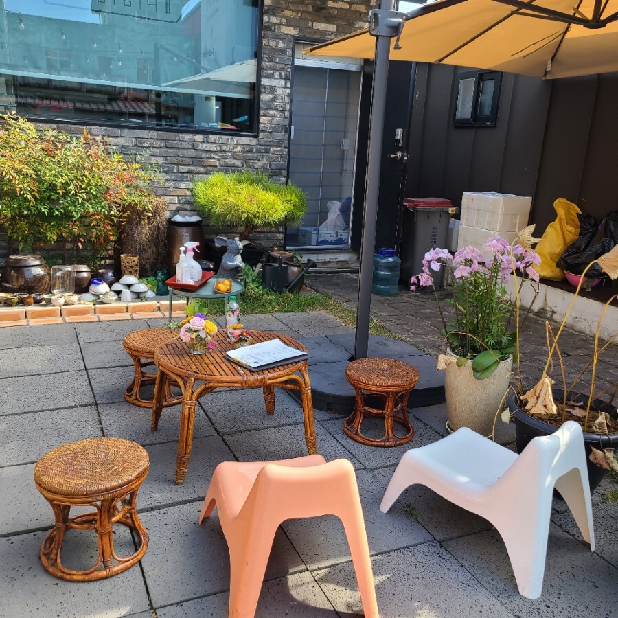 들어가면 마당에 이렇게 귀여운 의자와 테이블로 대기실? 처럼