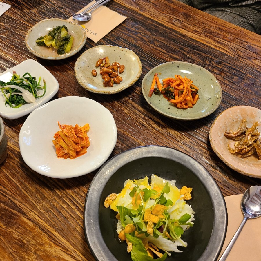 반찬들이 먼저 셋팅되는데 되게 건강식으로 나오는 모습이라서 맛까지 건강한 맛이면 어떡하나 싶었는데,